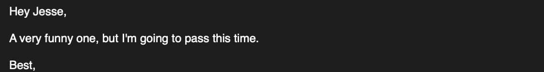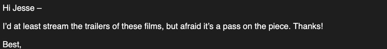 They’re still objectively funny pieces—I’ve included the rejection response for each of them saying so—but that doesn’t mean they work for a general audience. Lucky for me, you’re not a general audience. You’re reading my newsletter.
